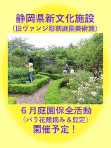 多くの方々に愛されている新文化施設(旧ヴァンジ)の庭園保全イベントを、6月も開催します。