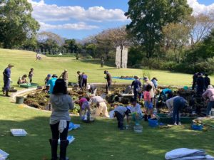 10月12日(土)、旧ヴァンジ彫刻庭園美術館にて、駐車場や庭園・鏡池の清掃活動とバラ摘み体験を行いました。