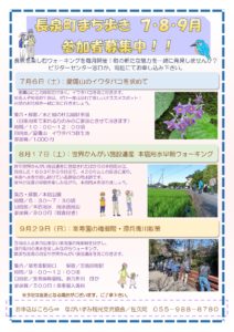 月に一度開催している「ながいずみ町歩き」7月・8月・9月の参加者募集が始まりました。